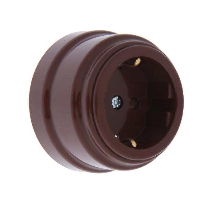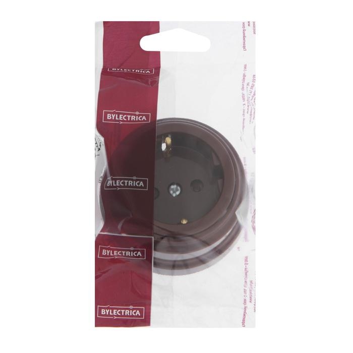 Розетка BYLECTRICA Ретро РА16-0202, 16А, одномест., наруж., с з/к, без крышки, IP20, корич.