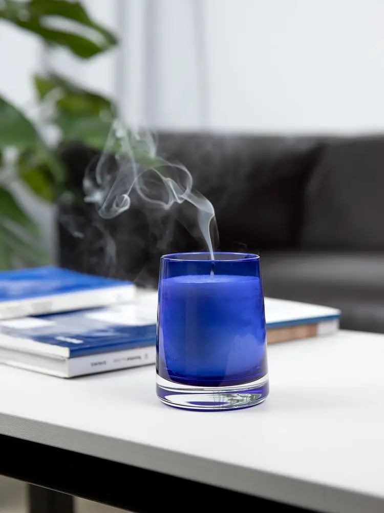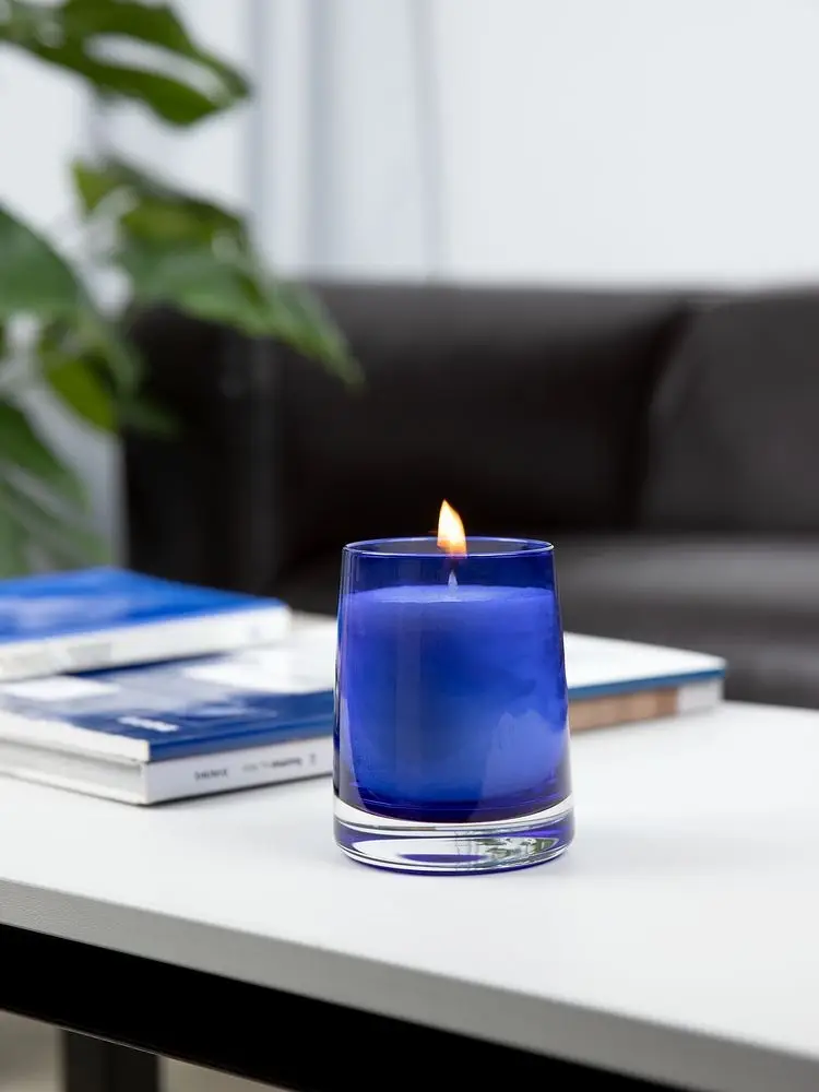 Ароматическая свеча Fragnola в изящном подсвечнике из цветного стекла идеально подходит для создания уютной атмосферы в доме и станет отличным дополнением к любому интерьеру.