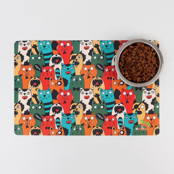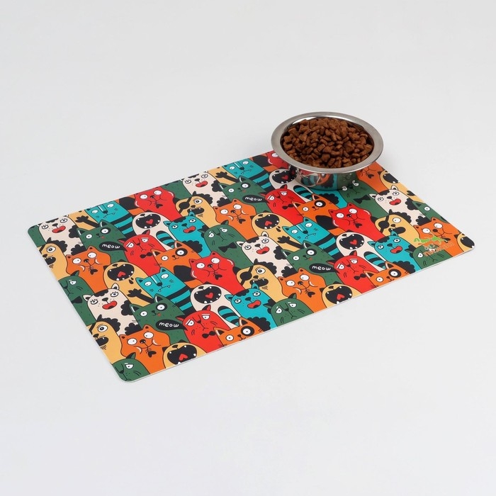 Коврик под миску "Пижон" с нескользящим основанием 43 х 28 см "Голодные коты"