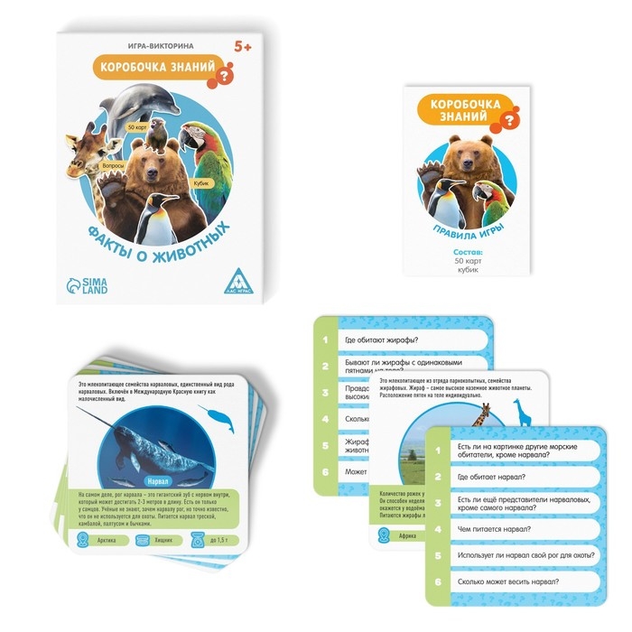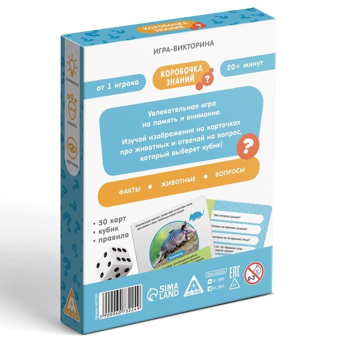 Настольная игра-викторина «Коробочка знаний. Факты о животных», 50 карт, кубик, 5+