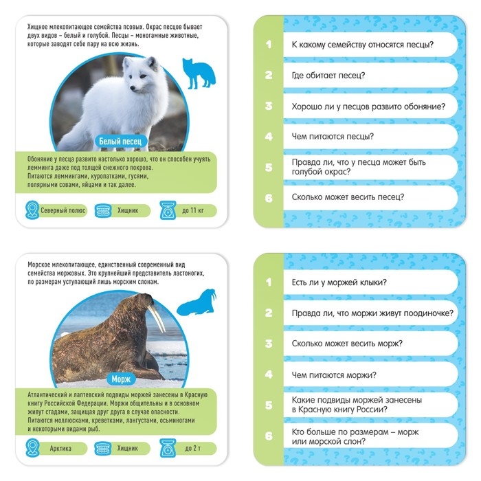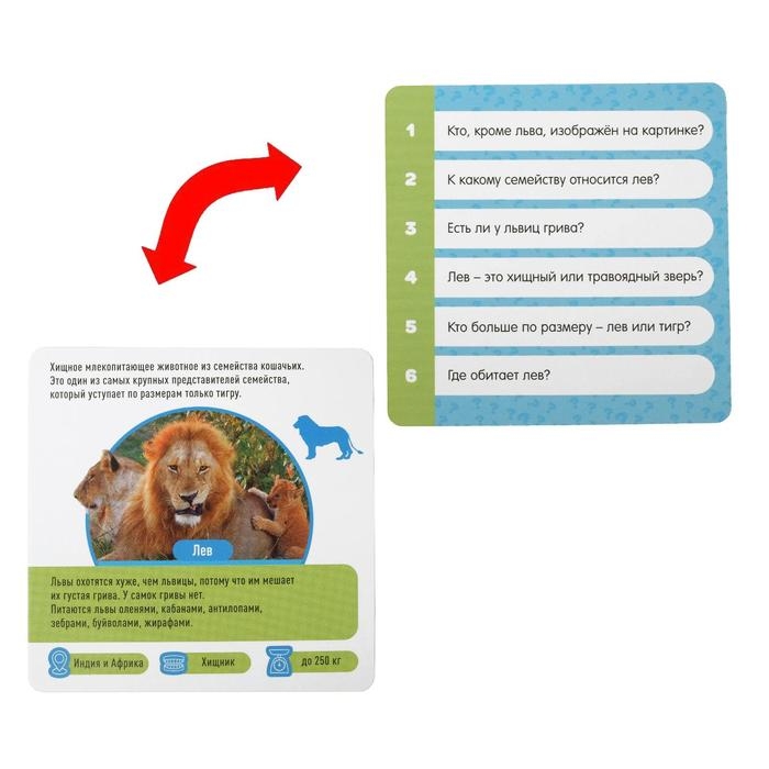 Это увлекательная игра, в которой дети смогут хорошенько натренировать наблюдательность и память. Почему? Потому что им предстоит запоминать информацию о животных на карточках, а потом отвечать на вопросы.