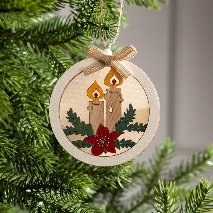 Ёлочная игрушка «Шар со свечками», от батареек, свечение тёплое белое