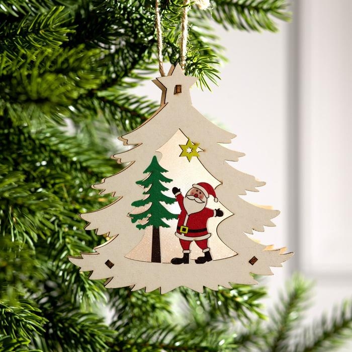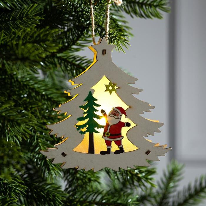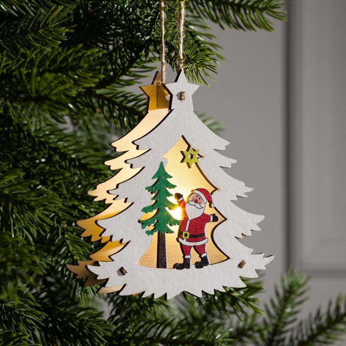 Ёлочная игрушка «Ёлочка с Дедом Морозом», от батареек, свечение тёплое белое