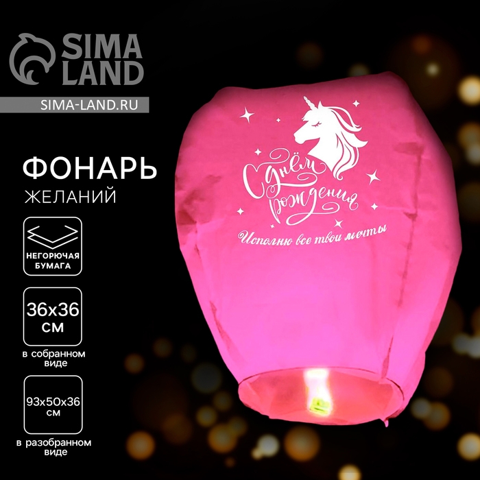 Небесный фонарик «Исполню все твои мечты» купол, розовый