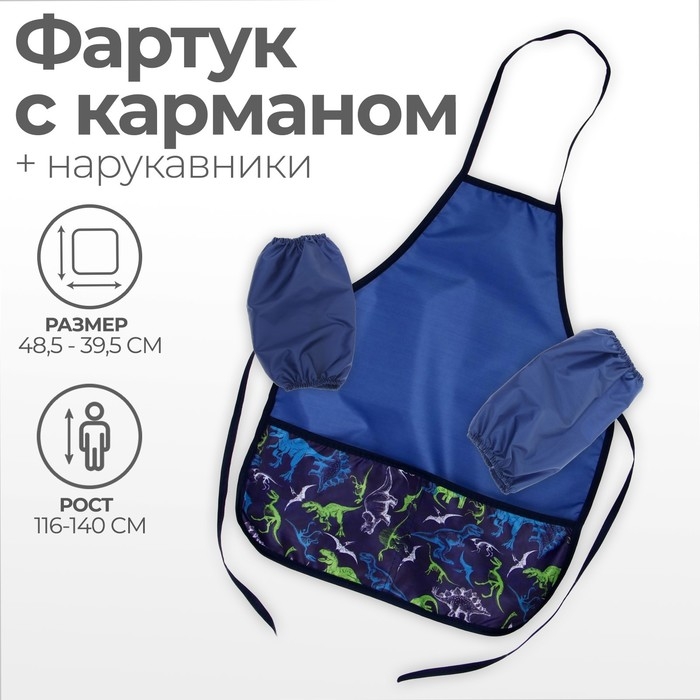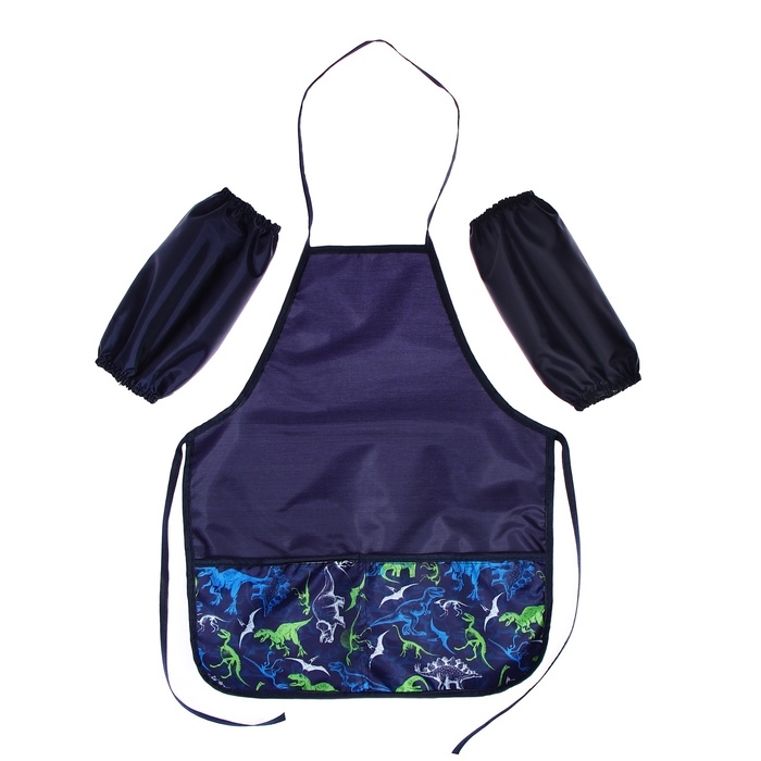 Фартук"Динозавры" поможет защитить одежду от грязи при занятиях творчеством. В комплекте с фартуком также поставляются нарукавники. Размеры: 485х395/250х160. Цвет: тёмно-синий.