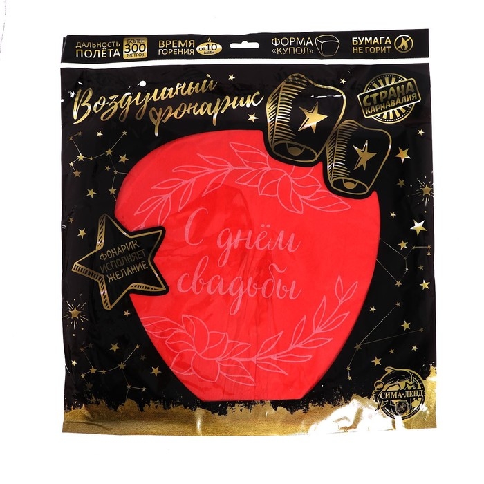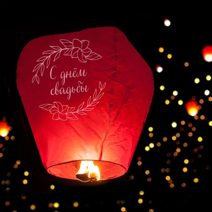 Небесный фонарик «С днём свадьбы», купол, красный