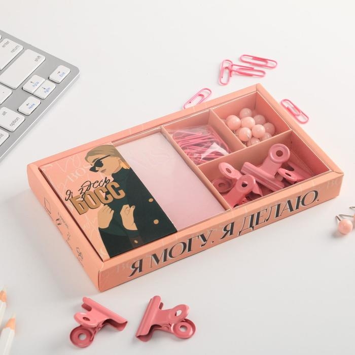 Подарочный набор Follow your dreams, блок бумаг 150 л, скрепки, кнопки, зажимы