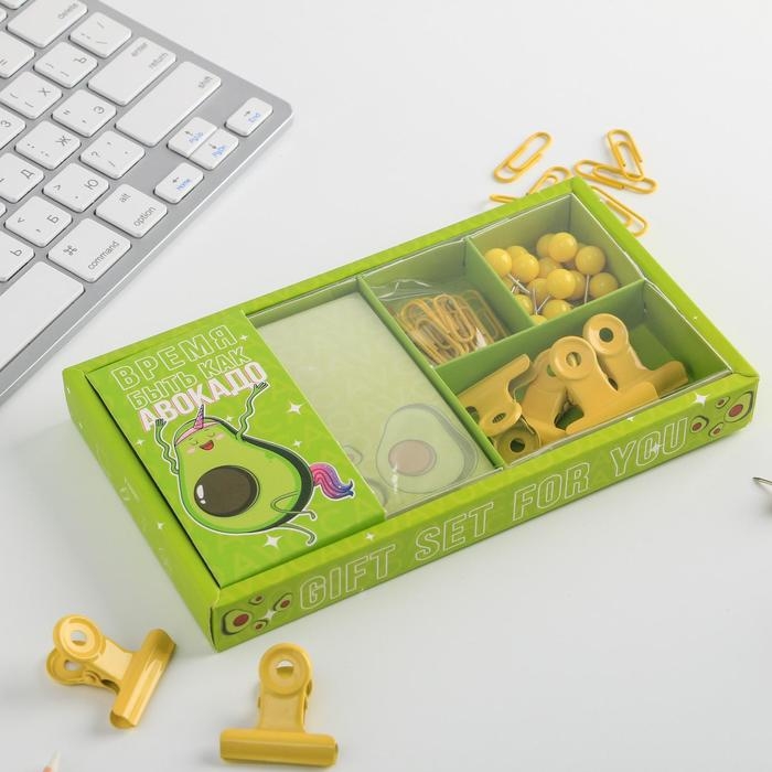Подарочный набор «Будь как авокадо», блок бумаг 150 л, скрепки, кнопки, зажимы