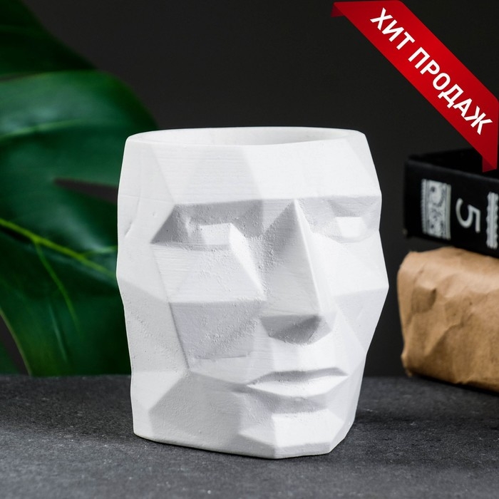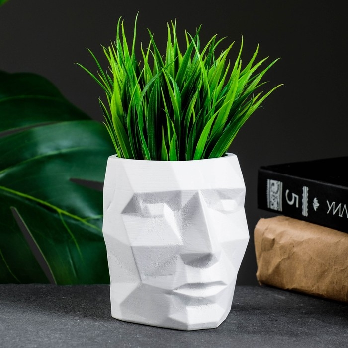 Кашпо - органайзер "Геометрическая голова" белое, 0,15 л / 9х9х7,5см