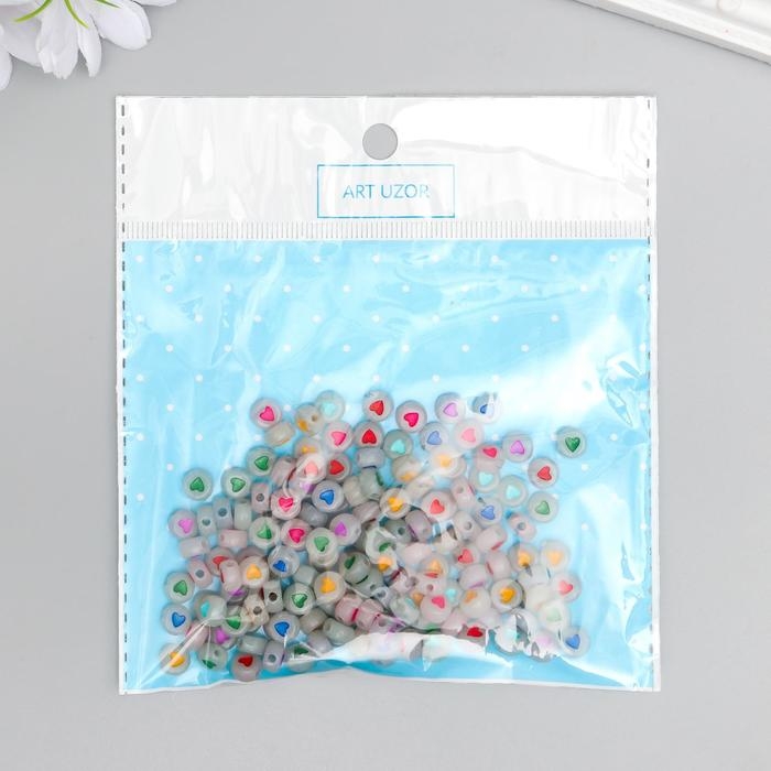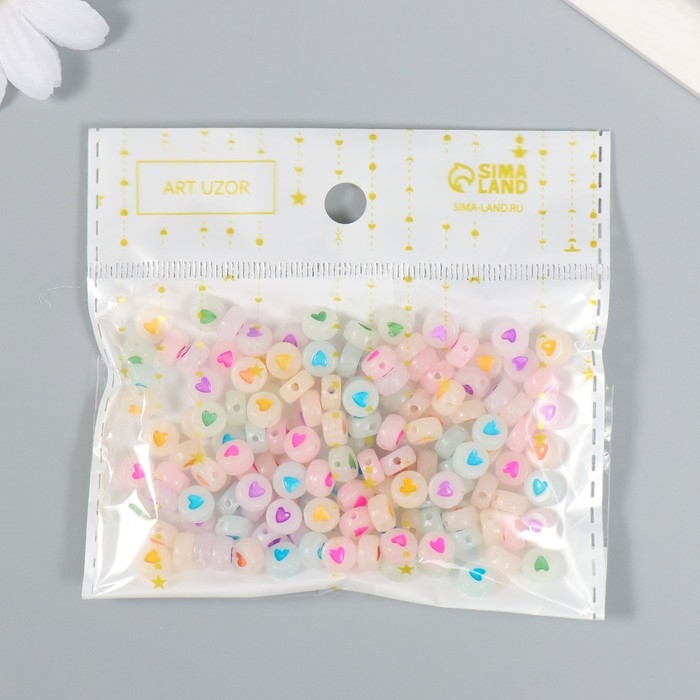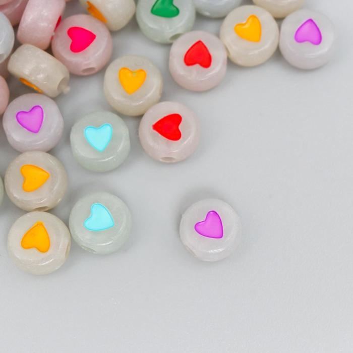 Набор бусин для творчества акрил фосфорные "Сердечки" набор 20 гр 0,4х0,7х0,7 см