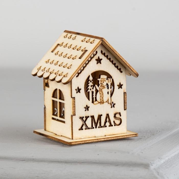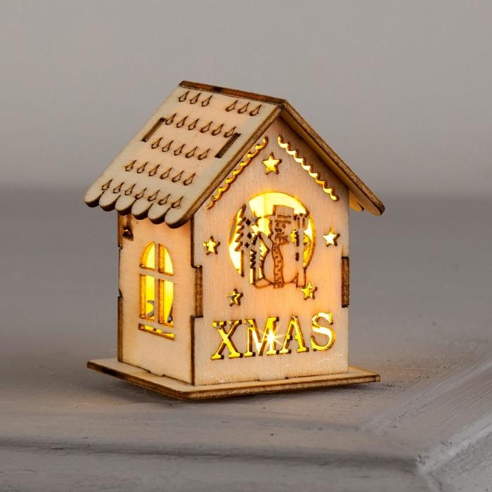 Ёлочная игрушка «Домик со снеговиком», от батареек, свечение тёплое белое