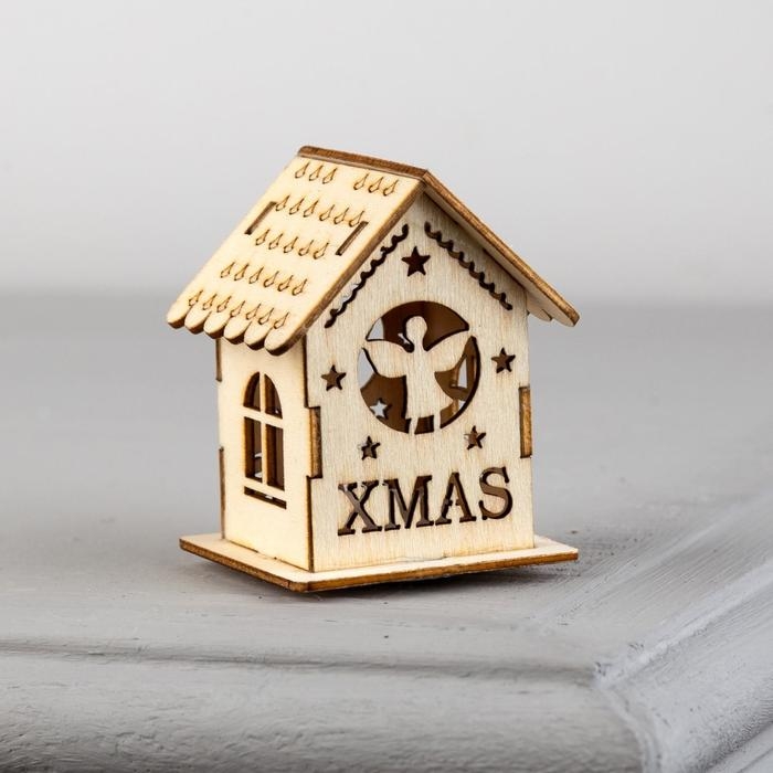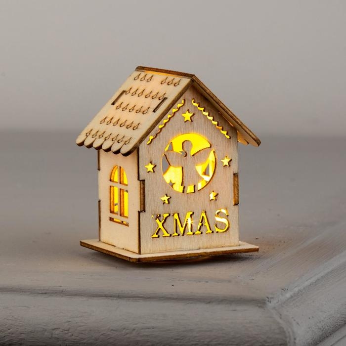 Ёлочная игрушка «Домик с ангелом», от батареек, свечение тёплое белое