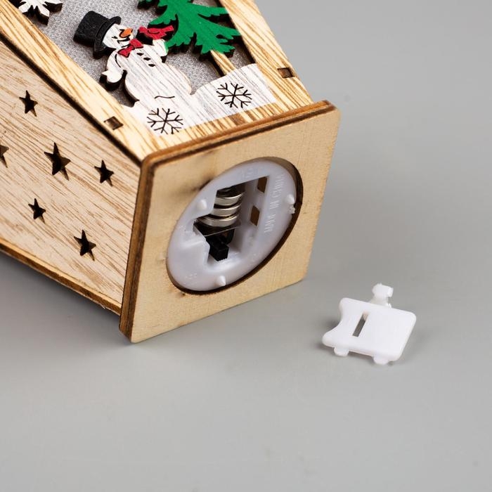 Ёлочная игрушка «Домик со снеговиком», от батареек, свечение тёплое белое