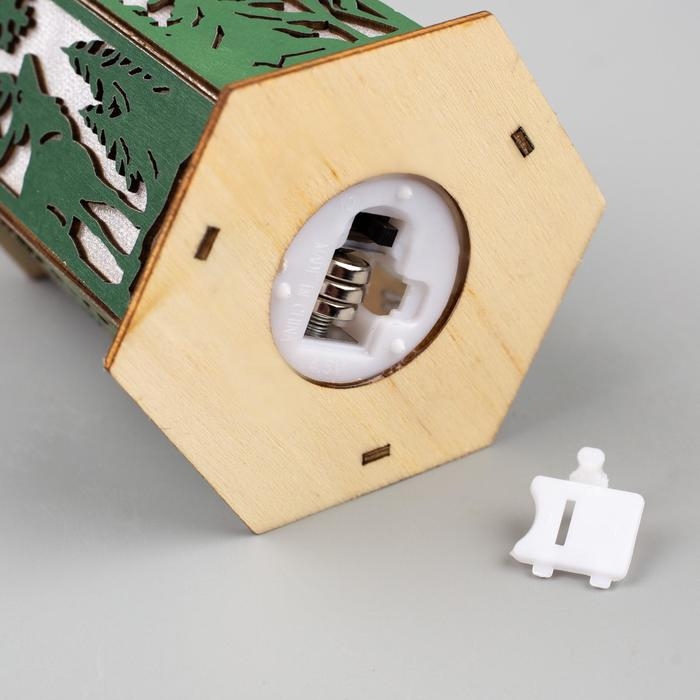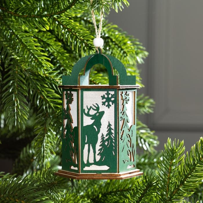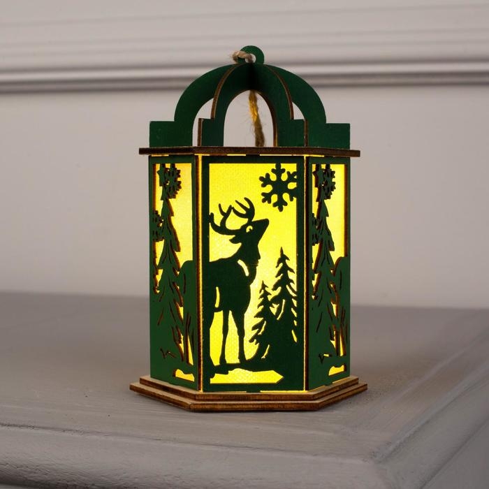 Ёлочная игрушка «Зелёный фонарь с оленем», от батареек, свечение тёплое белое