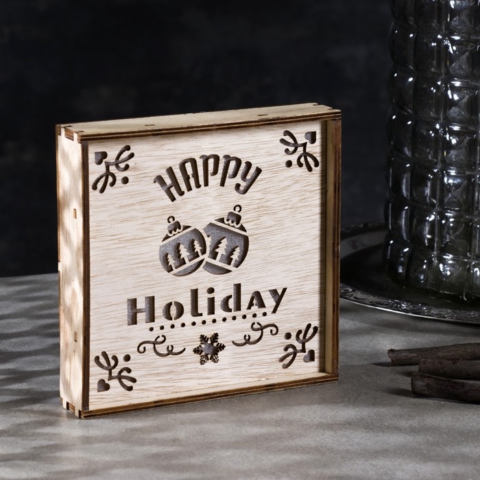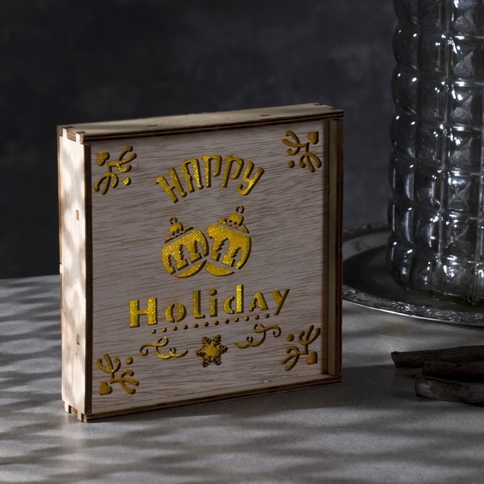 Светодиодная фигура «Счастливые каникулы» 15 × 15 × 4 см, дерево, батарейки CR2032х2 (в комплекте), свечение тёплое белое