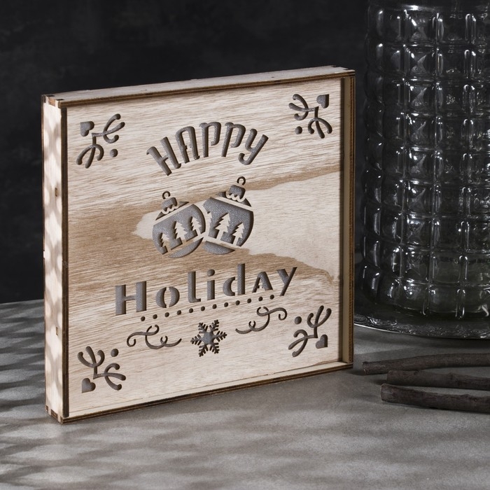 Светодиодная фигура «Счастливые каникулы» 22 × 22 × 4 см, дерево, батарейки АААх2 (не в комплекте), свечение тёплое белое