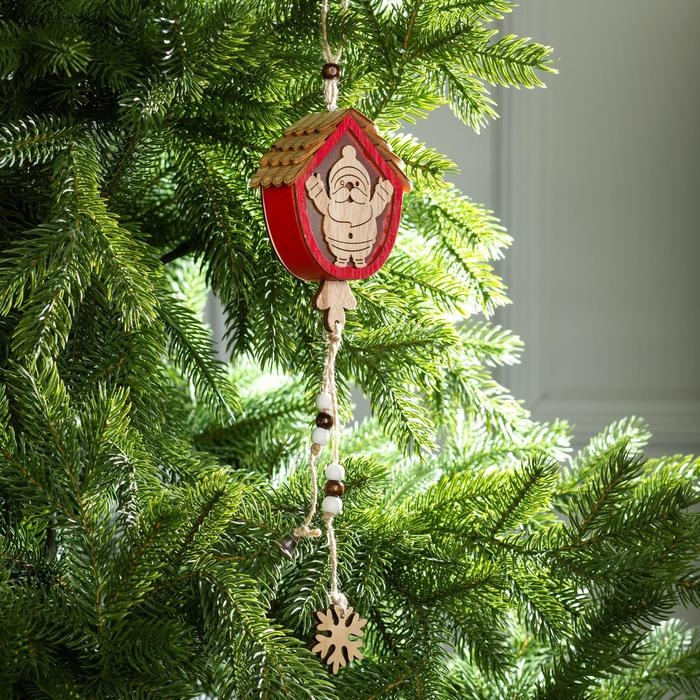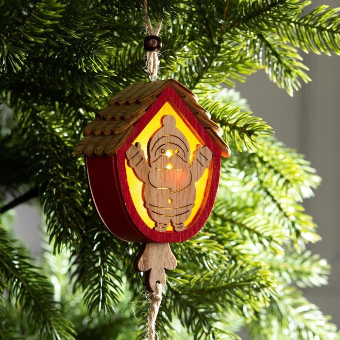 Ёлочная игрушка «Домик с Дедом Морозом», от батареек, свечение тёплое белое