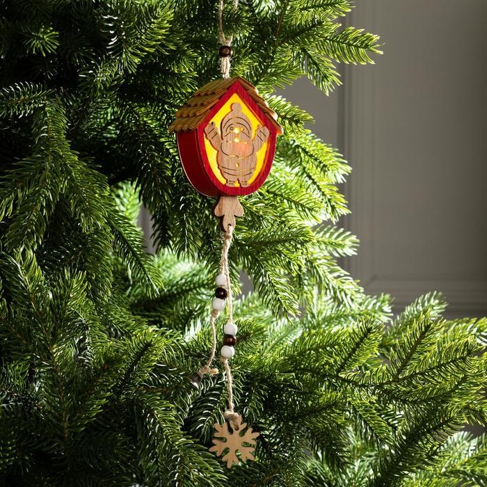 Ёлочная игрушка «Домик со снеговиком», от батареек, свечение тёплое белое