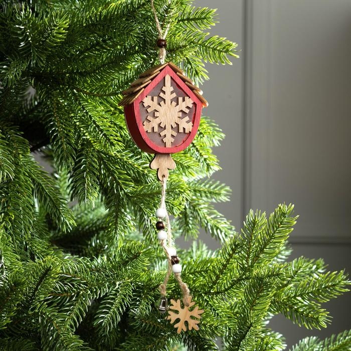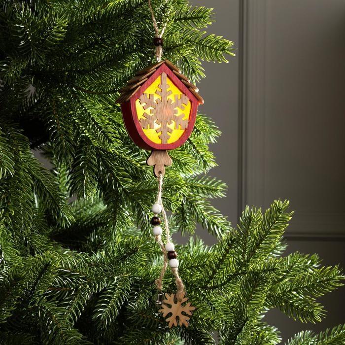 Ёлочная игрушка «Домик со снежинкой», от батареек, свечение тёплое белое