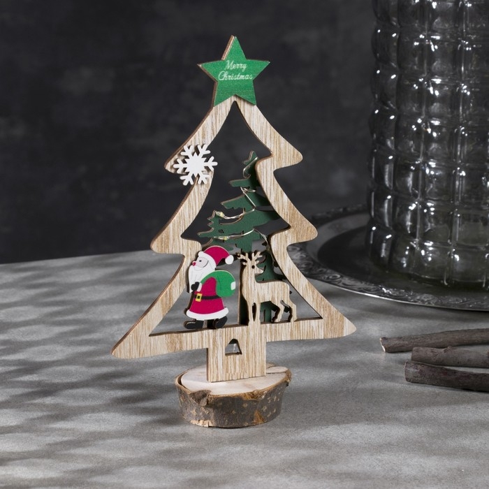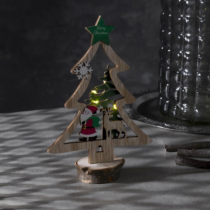 Светодиодная фигура «Ёлка с Дедом Морозом» 13 × 20 × 5 см, дерево, батарейки CR2032х1 (в комплекте), свечение тёплое белое