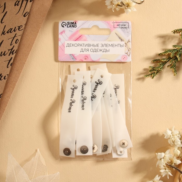 Бирка с кнопкой «Ручная работа», 8 × 1,5 см, 10 шт, цвет матовый/чёрный
