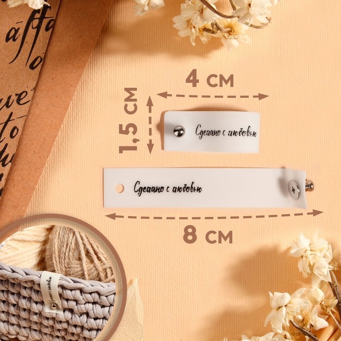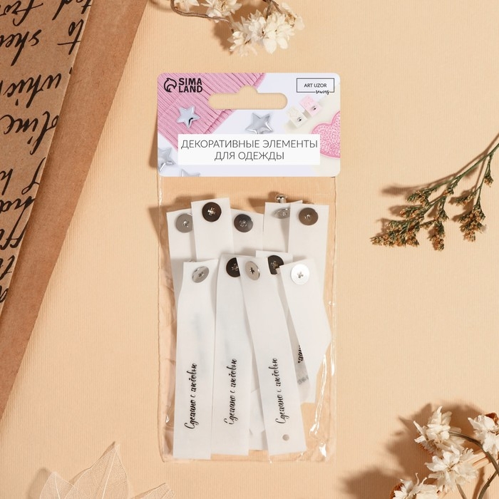 Бирка с кнопкой «Сделано с любовью», 8 × 1,5 см, 10 шт, цвет матовый/чёрный