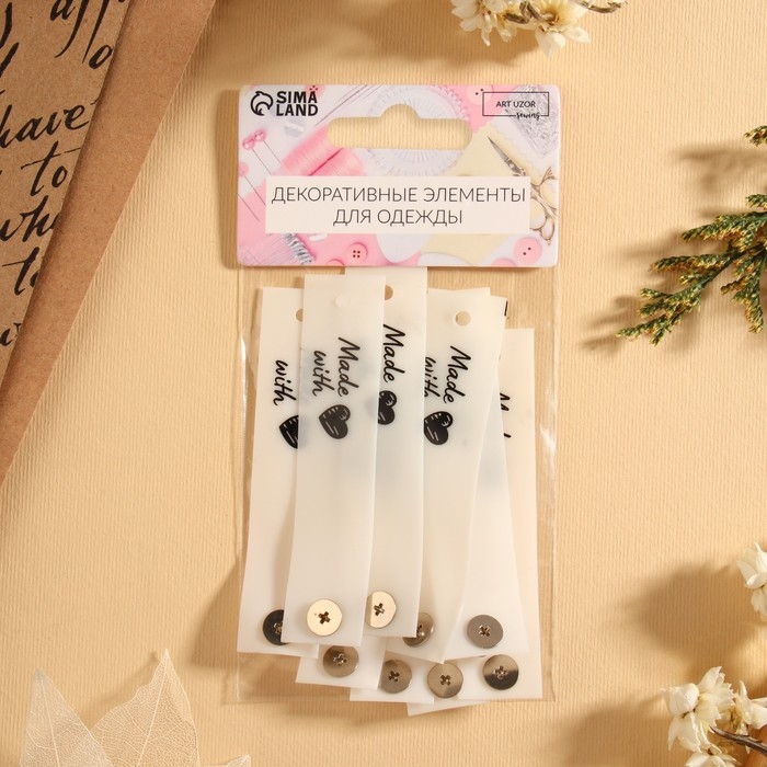 Бирка с кнопкой «Made with love», 8 × 1,8 см, 10 шт, цвет матовый/чёрный