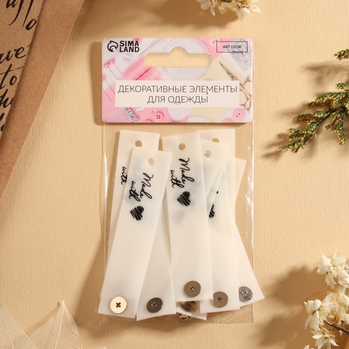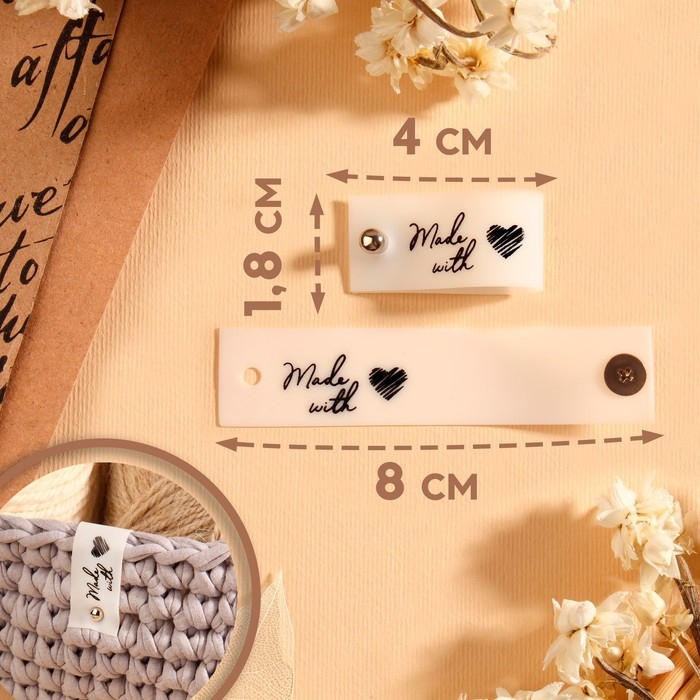 Бирка с кнопкой «Made with love», 8 × 1,8 см, 10 шт, цвет матовый/чёрный