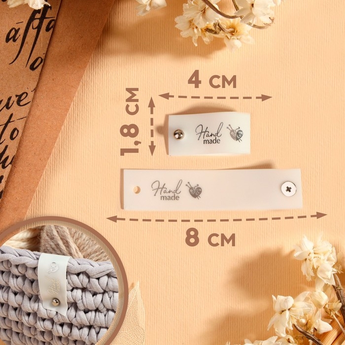 Бирка с кнопкой «Hand made», 8 × 1,8 см, 10 шт, цвет матовый/серебряный