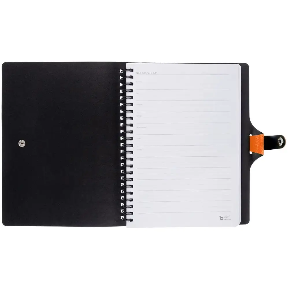 Ежедневник с гибкой обложкой, выполнен из материалов La Fite, оранжевый ОО и Waltz черный АА.
