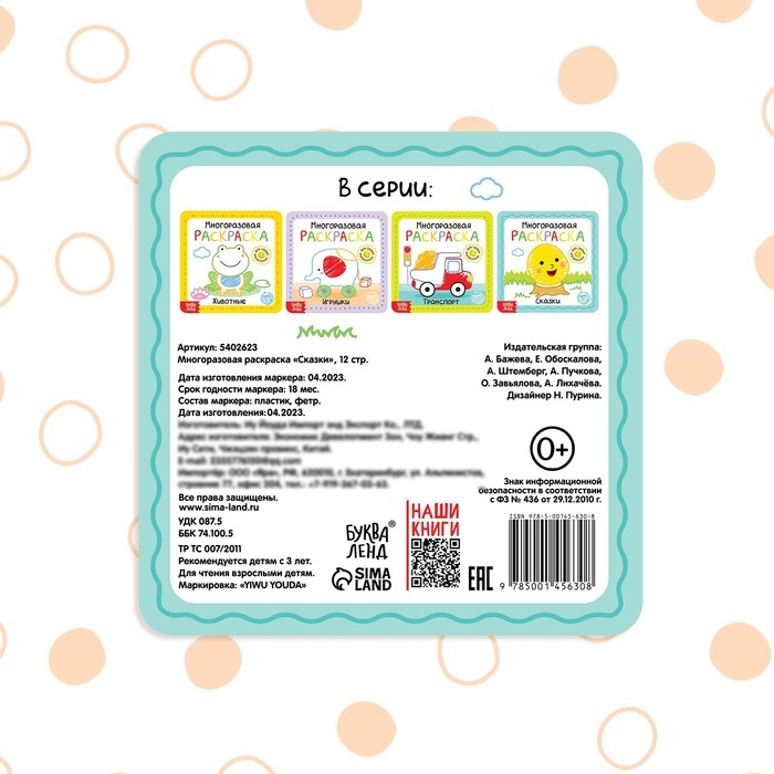 Многоразовая раскраска «Сказки», с маркерами, 12 стр.