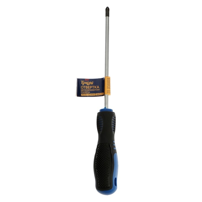 Отвертка крестовая ТУНДРА, CrV, хром, магнит, двухкомпонентная рукоятка, PH2 х 150 мм