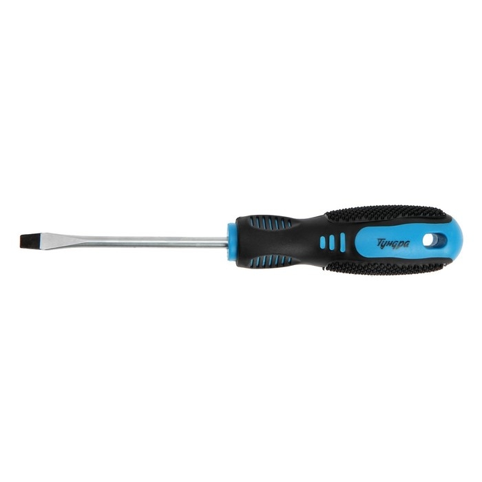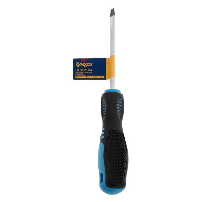 Отвертка шлицевая ТУНДРА, сатин, магнит, двухкомпонентная рукоятка, SL6 х 100 мм