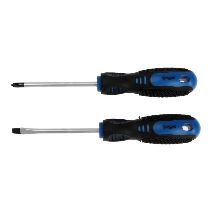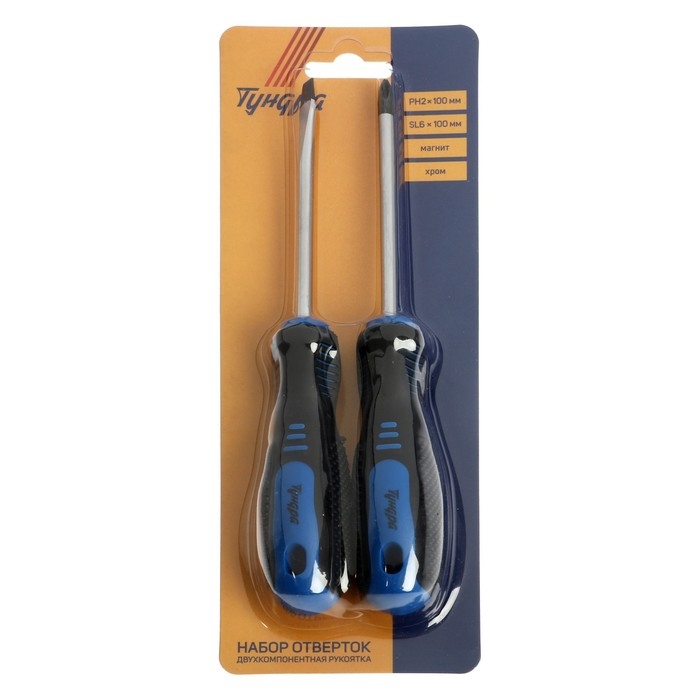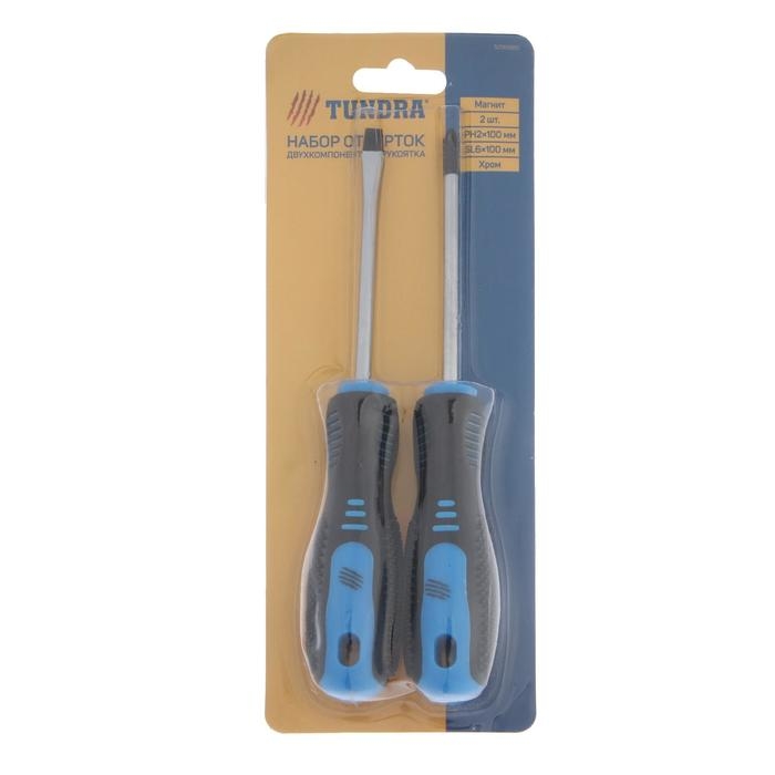 Набор отверток ТУНДРА, CrV, хром, магнит, 2К рукоятки, PH2/SL6 х 100 мм, 2 шт.