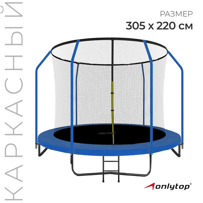 Батут ONLITOP, d=305 см, высота сетки 173 см, с лестницей, цвет синий