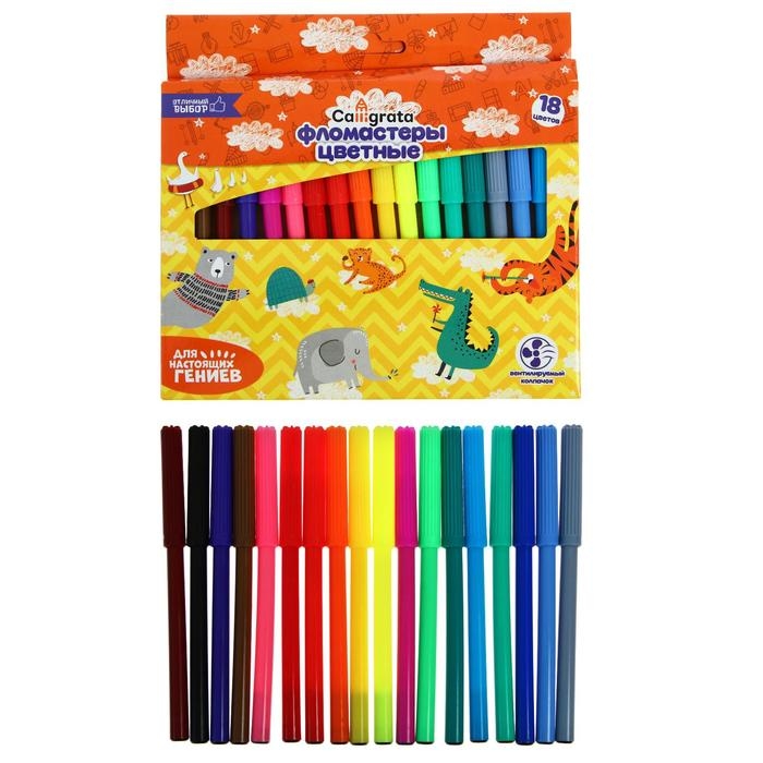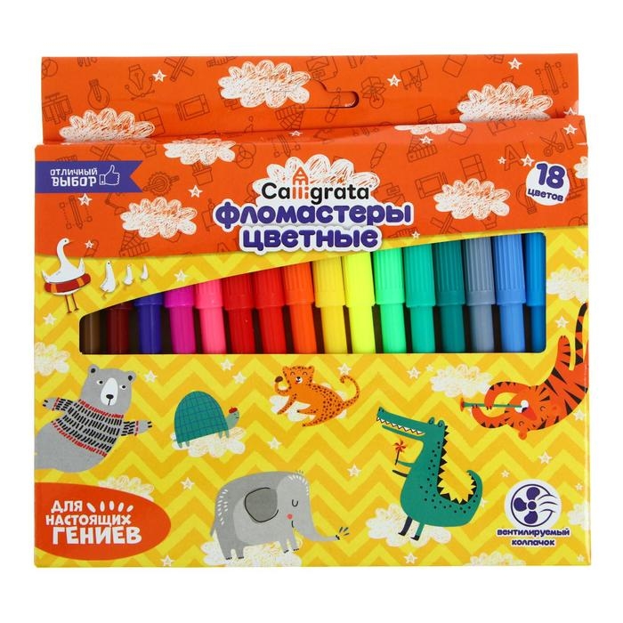 Фломастеры Calligrata, 18 цветов, в картонной коробке, вентилируемый колпачок