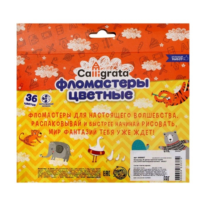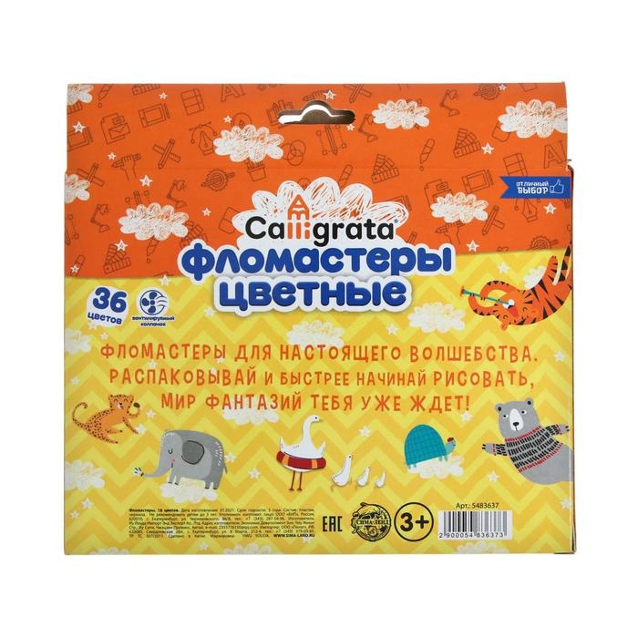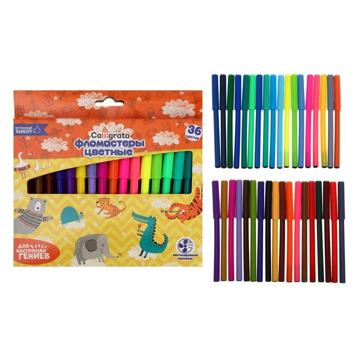 Набор фломастеров Calligrata содержит 36 ярких и насыщенных цветов.