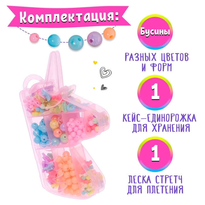 - С помощью набора можно сплести браслеты, ожерелья и другие аксессуары. Эластичная леска упрощает процесс работы, делая его доступным даже для начинающих.