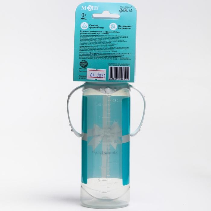 Бутылочка для кормления «Тиффани», классическое горло, 250 мл., от 0 мес., цилиндр, с ручками