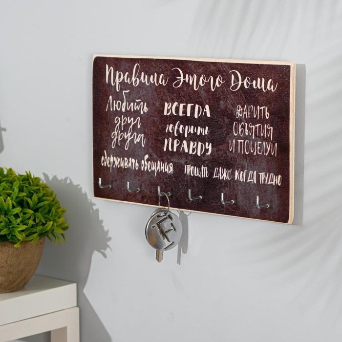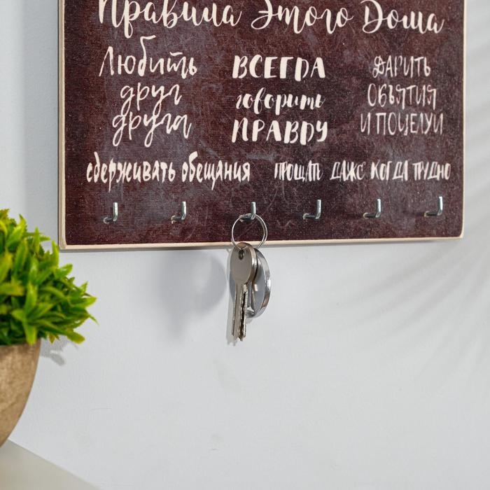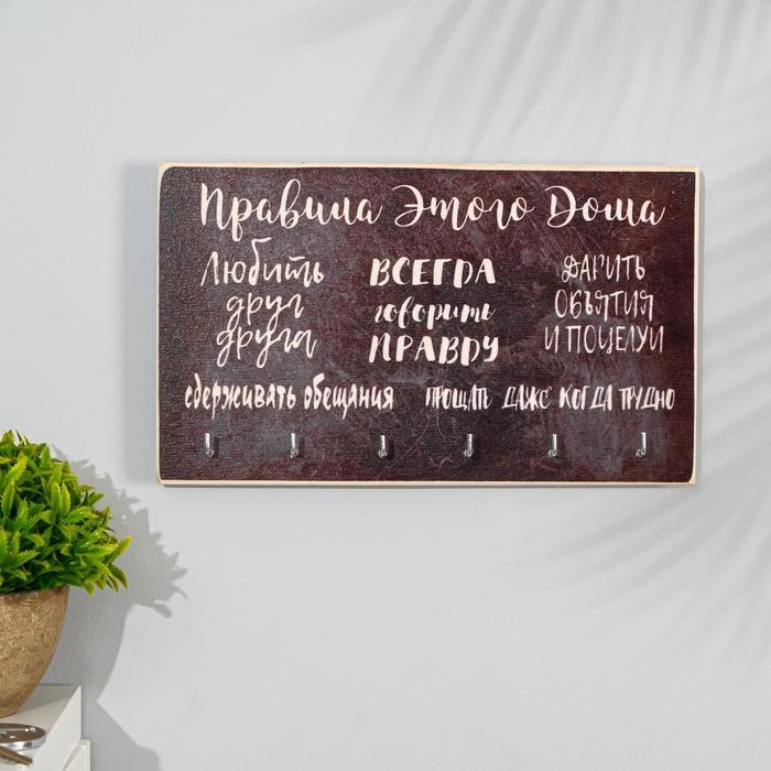 Ключница деревянная "Правила этого дома" 6 крючков 25х15 см