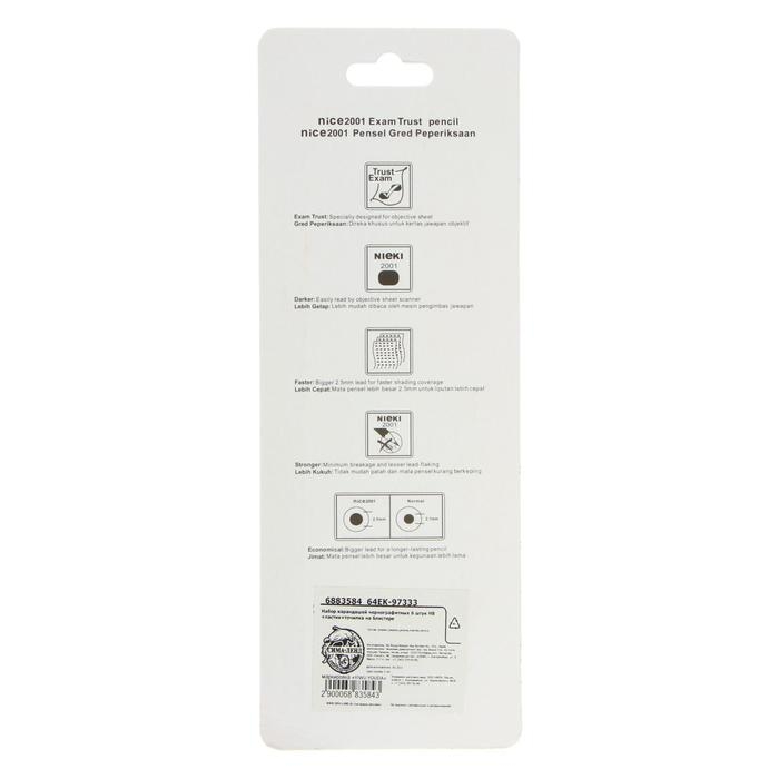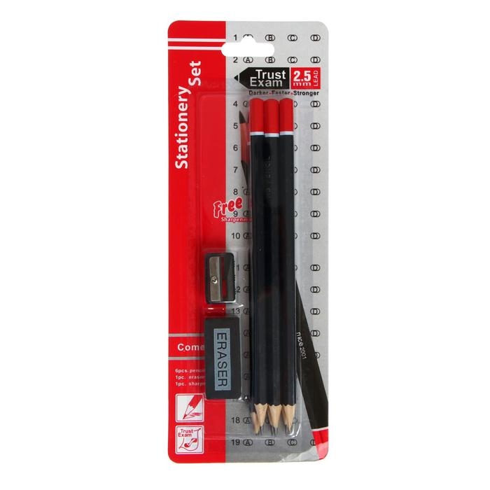 Набор карандашей чернографитных 6 штук НВ+ластик+точилка, блистере