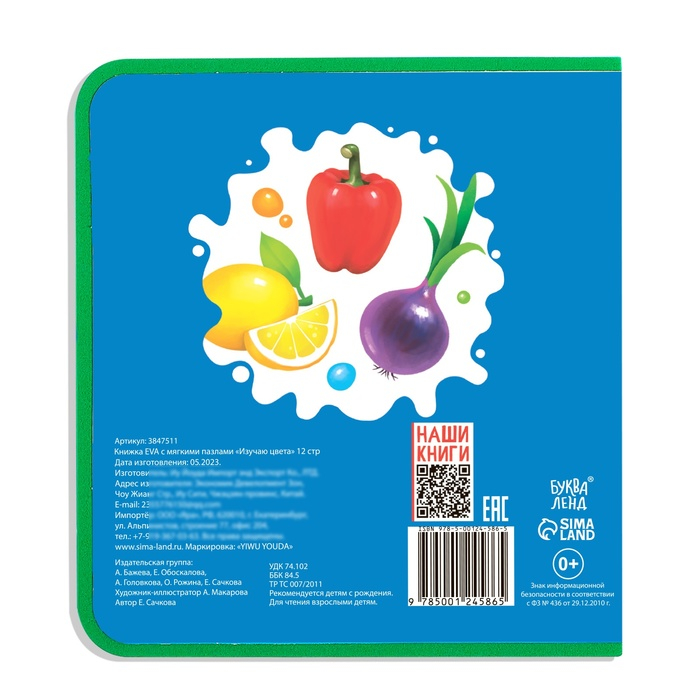 Книжка с мягкими пазлами EVA «Изучаю цвета», 12 стр.
