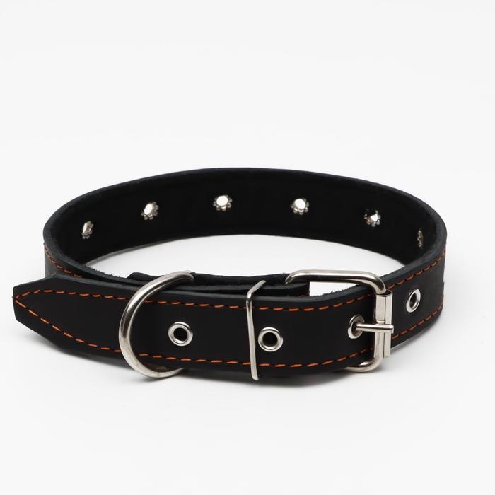Ошейник кожаный на синтепоне "Ёж", 64 х 3 см, ОШ 40-55 см, чёрный