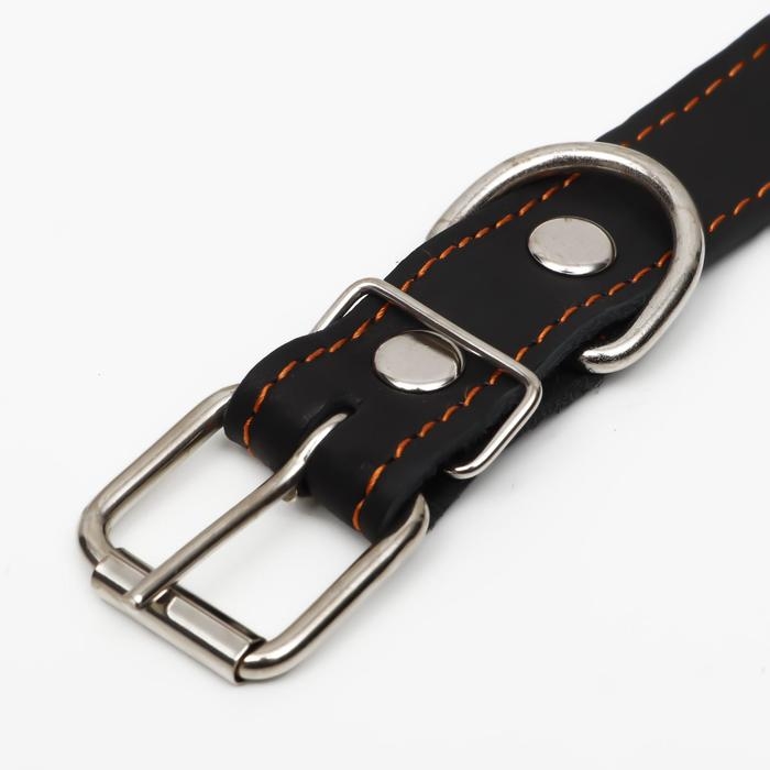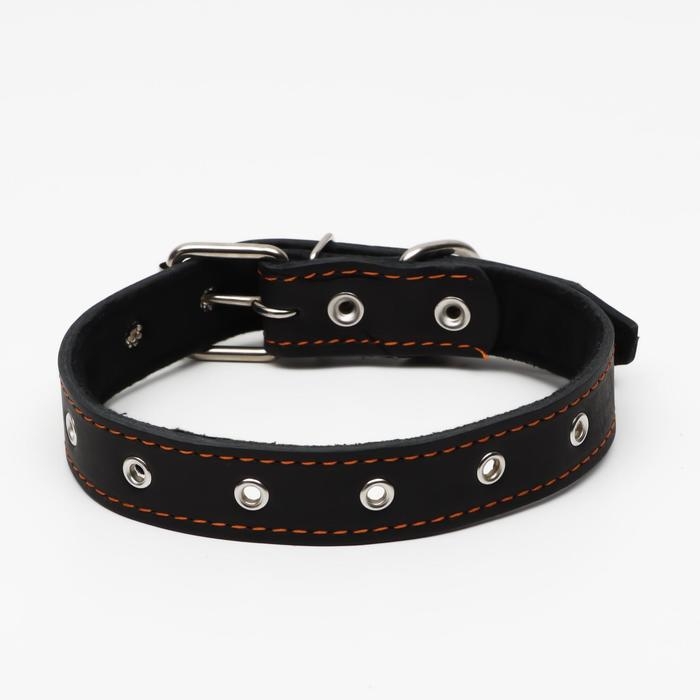 Ошейник кожаный на синтепоне, безразмерный, 65 х 3 см, ОШ 22-55 см, чёрный