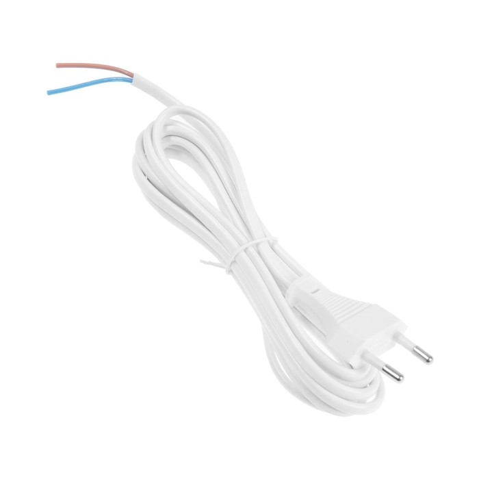 Шнур сетевой с вилкой, 2,5 м, ШВВП 2 х 0.5 мм2, белый