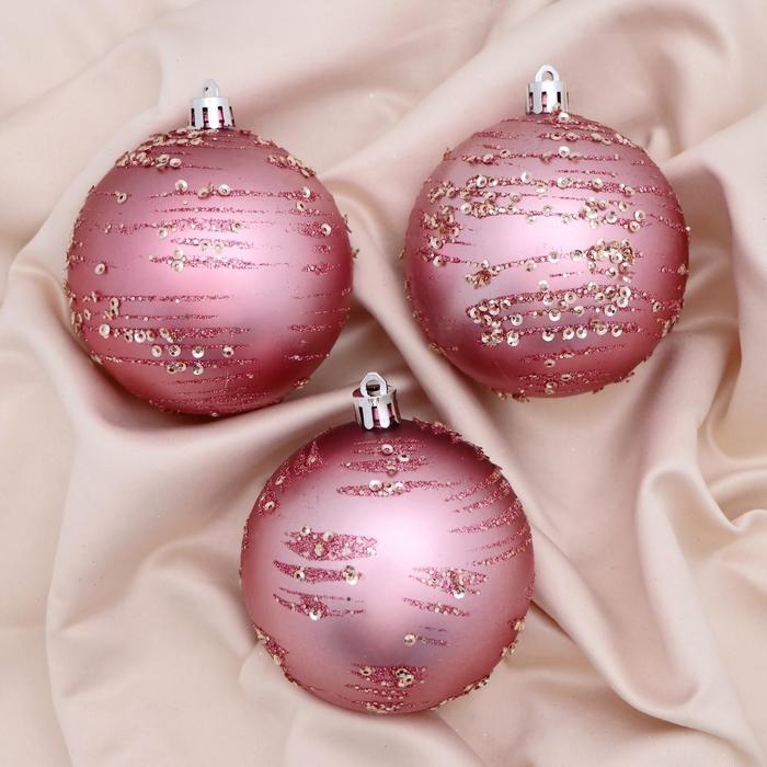 Набор шаров пластик d-8 см, 3 шт "Джейн пайетки" розовый