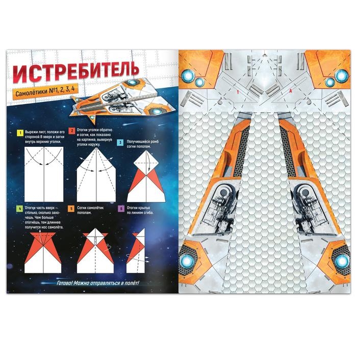 Делать воздушные судна нужно будет не из скучных белых листов — внутри ждут крутые цветные модели и пошаговые инструкции к ним.