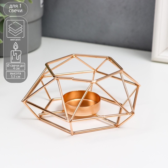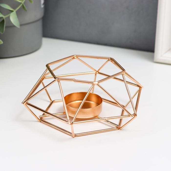 Подсвечник металл на 1 свечу "Шестигранник" золото 5,5х13х11,5 см