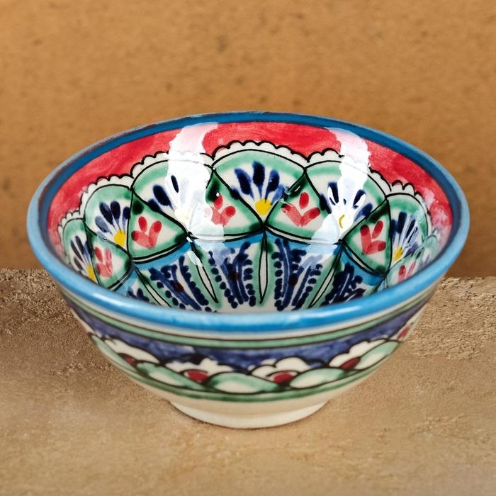 Пиала чайная Риштанская керамика "Узоры" большая, 11 см, микс