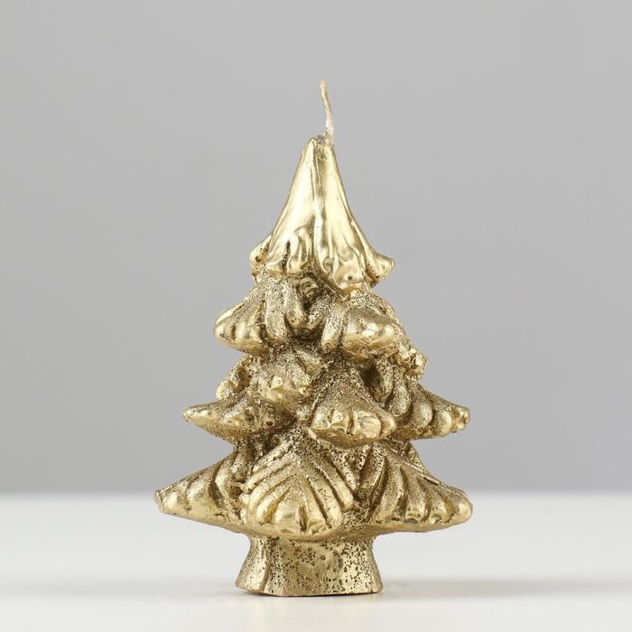 Свеча новогодняя "Ёлочка на пеньке", 7 см, золотая